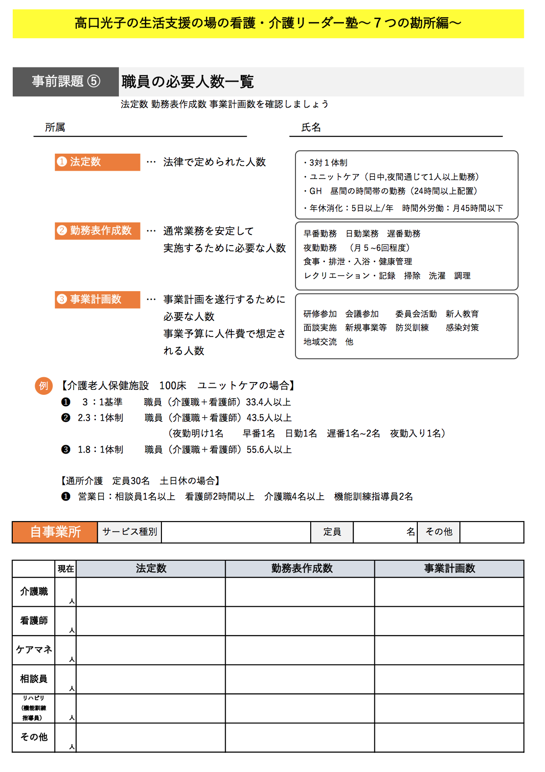 事前課題⑤ 職員の必要人数一覧
