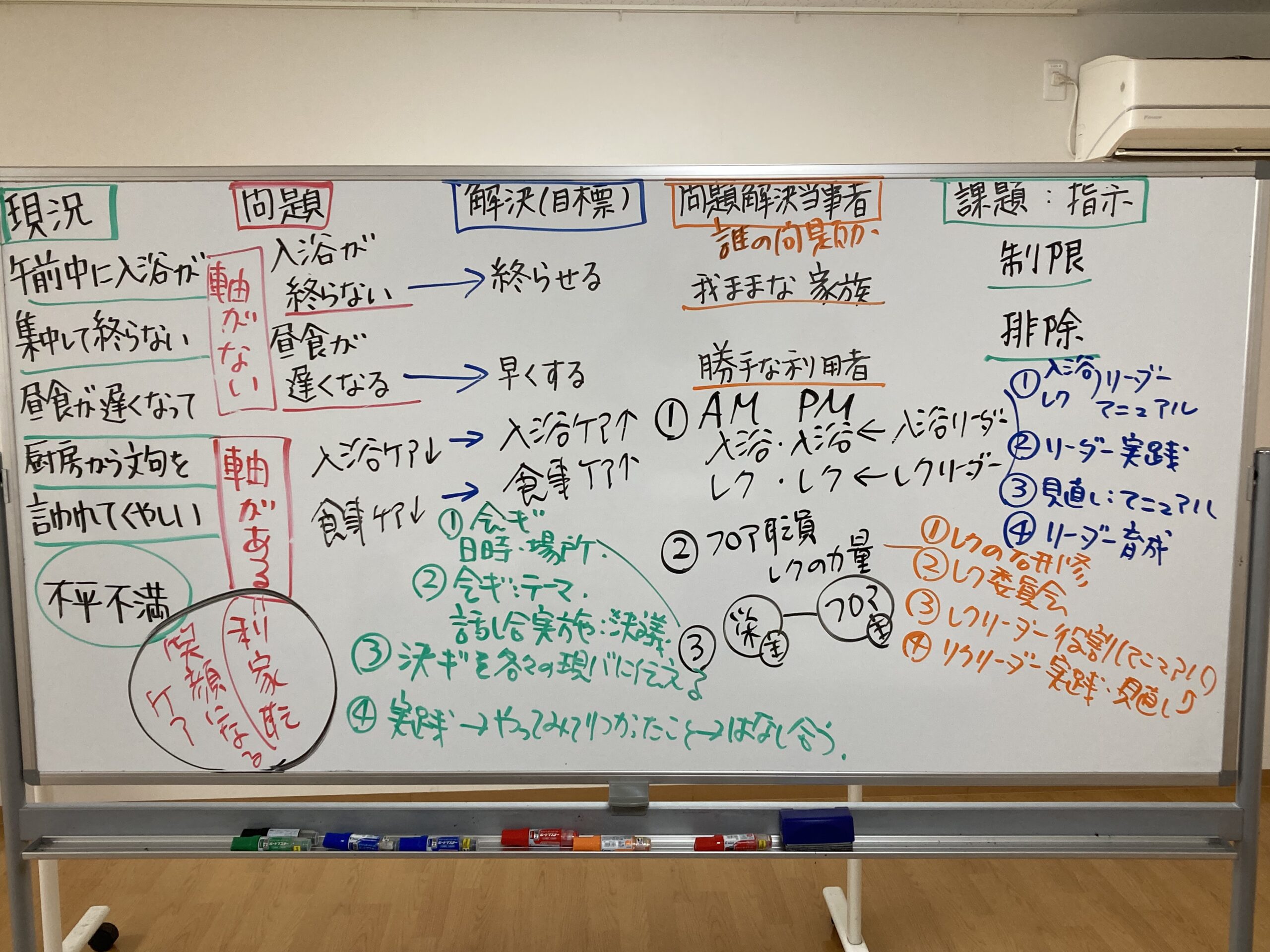 「統一された理念と関わり方の個別性(個別ケア)。ここに職員は混乱する。この混乱を調整、最低限にするために業務マニュアル、申し送り、記録、会議などがある」